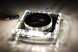 Square recessed fitting spotlight GU10 with build in LED Stripe 3W.Glass – Mirror